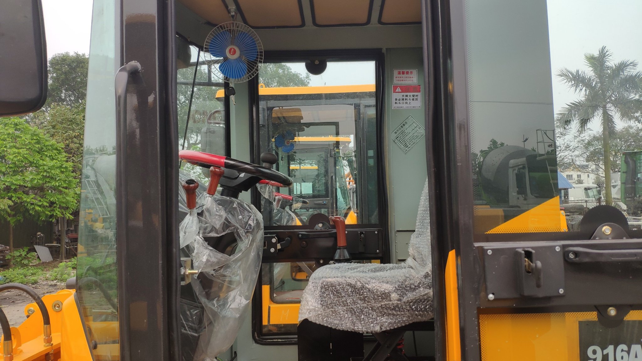 Cabin máy được thiết kế thoáng đãng với góc nhìn rộng. Mặt trước là tấm kính trong suốt vát cong không điểm mù, giúp người lái quan dát dễ dàng. Cabin có cửa sổ trời, bảng điều khiển đơn giản, quạt gió làm mát.
